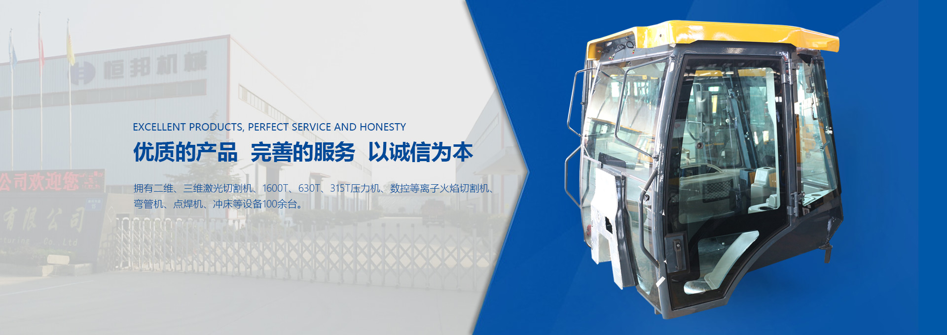 揚州市恒邦機械制造有限公司位于風景秀麗的揚州市江都區丁伙工業園區。瀕臨長江,緊靠京滬高速、啟揚高速,地理條件優越,交通營運便利。我公司集多年模具開發和鈑金制造經驗,自2009年起,專注生產工程機械駕駛室、配重塊、覆蓋件和特種駕駛室。研發設計技術人員30名,員工300名?,F代化生產車間20000平米。...